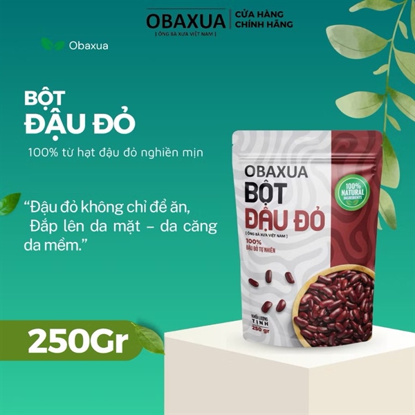 Bột đậu đỏ Obaxua có kết cấu mịn, mùi thơm tự nhiên, không lẫn tạp chất. Thành phần 100% nguyên chất organic, an toàn cho da và sức khỏe. Dùng để đắp mặt hoặc tắm giúp da sáng dần, mịn màng và hỗ trợ làm sạch nhẹ nhàng. Phù hợp với làn da nhạy cảm, giá cả hợp lý, bao bì tối giản nhưng chắc chắn.